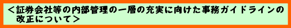 本文等をご覧になりたい方は、金融庁ホームページの「事務ガイドライン」から「事務ガイドラインの一部改正に関する報道発表」の「証券会社等」に入り、「平成15年4月1日 事務ガイドライン(「証券会社、投資信託委託業者及び投資法人並びに証券投資顧問業者等の監督等にあたっての留意事項について」)の一部改正について」にアクセスしてください。また、「証券市場の改革促進プログラム」をご覧になりたい方は、金融庁ホームページの「報道発表など」から「「証券市場の改革促進プログラム」について」(平成14年8月6日)にアクセスしてください。 |