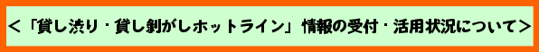 金融庁は、昨年10月25日、中小企業等への金融の円滑化を求める声が引き続き強いことも踏まえ、中小企業など借り手の声を幅広く聞くため、「貸し渋り・貸し剥がしに関する情報の電子メール・ファックスによる受付制度」(通称「貸し渋り・貸し剥がしホットライン」)を開設したところであり、本年3月31日までに、金融庁及び全国の財務局等において628件の情報を受け付けております。 「貸し渋り・貸し剥がしホットライン」に寄せられた情報につきましては、その内容を整理し、分析するとともに、これらの情報を基に、法令等違反のおそれがある場合等に金融機関に対して個別にヒアリングを実施し、注意喚起を行ったほか、金融機関に対する検査においてこれらの情報を参考とするなど、金融機関の検査・監督の実施に当たり重要な情報として活用させていただいております。また、「貸し渋り・貸し剥がしホットライン」に寄せられた情報をより有効に活用し、政府全体として対応を図るため、中小企業庁と連携して関係省庁間の連絡会議を開催しております。 |
