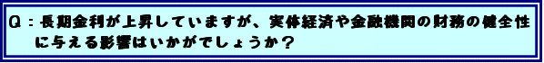 前から専門家の間では、金利が何%上がれば国債金利が何%上がって、債券の価格が何%下がれば、それによって評価損がどのぐらい生じると、そういう計算は存在していると思います。その意味では、今金融機関が国債を大量に抱えている中で、債券市場におけるリスクというのも銀行は潜在的に背負っているということになります。 そうした観点から、まず第一には、やはり我々としては、とにかく財政を健全化して、国債市場の信任を維持していくということが大変重要だと思いますし、銀行は銀行として、自らのポートフォリオの中で、リスクを出来るだけ低下していく努力は当然のことながらしていただけると思っています。 仮定の議論を余りしても仕方ないと思いますので、我々としては、そうした基本方針を確認した上で、しっかりと対応していきたいと思います。 |