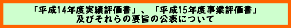 ○ 「平成14年度実績評価書」、「平成15年度事業評価書」及びそれらの要旨の公表について