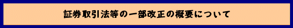改正法をご覧になりたい方は、金融庁ホームページの「国会提出法案」から「第156回国会における金融庁関連法案」に入り、証券取引法等の一部を改正する法律(平成15年3月14日提出、平成15年5月23日成立)にアクセスしてください。 |