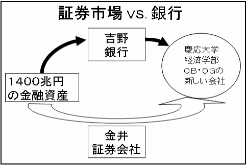 .2週間前「金融庁で働いていると当然と考えていることをどう説明するか?」 さて、2週間前になると、準備も佳境に入ります。筆者の経験では、大学で90分の講義を一コマやろうと思うと、完全に予備知識がある場合でも準備にまるまる3日間はかかります。資料を作っていると、「ああ、この講義引き受けなければよかった」と何回か心から後悔しますが、それ以外の時は、知的な楽しい時間です。 この頃一番思い悩むのは、「金融庁で働いていると当然と考えていることを、どう分かりやすく説明するか?」です。今回のテーマ、日本の証券市場について言えば、「直接金融市場が拡大することが何故重要か」、あるいは、「市場型金融システムが何故望ましいか」です。金融庁で一生懸命働いていると、この命題を当然としてスタートし、実現するための施策を必死で考えます。 ところでこの命題、「800人の学生さんに、短時間で、分かりやすく」説明しようとすると、意外に考え込みます。平成14年7月12日の「日本型金融システムと行政の将来ビジョン懇話会(いわゆるビジョン懇)」の報告書は「経済がキャッチアップを終了し、何が資金供給に値するか判然としない段階に至れば、情報の収集、チェックが多数の参加者により行われる市場金融モデルが望ましいと考えられる」と述べていますが、これだけでは、30秒で終わってしまいます。あれこれ考え、金融研究研修センターの仲間ともディベートして、講義での説明用に作ったのが資料2です。 実際の講義では、「君等が新しい会社を興すとき、吉野銀行と金井証券で、どちらが仕事の内容理解してくれると思うかい?そしてファイナンスをどちらに頼む?」と何人かの学生さんを当てました。当然講師としては、上記のビジョン懇の考え方通り、「金井証券」という答えを期待してたのですが、何と全員「吉野銀行」。吉野先生の信頼が絶大なのか、熱弁を奮ったつもりの筆者の説得力がまだまだだったのか・・・。 |