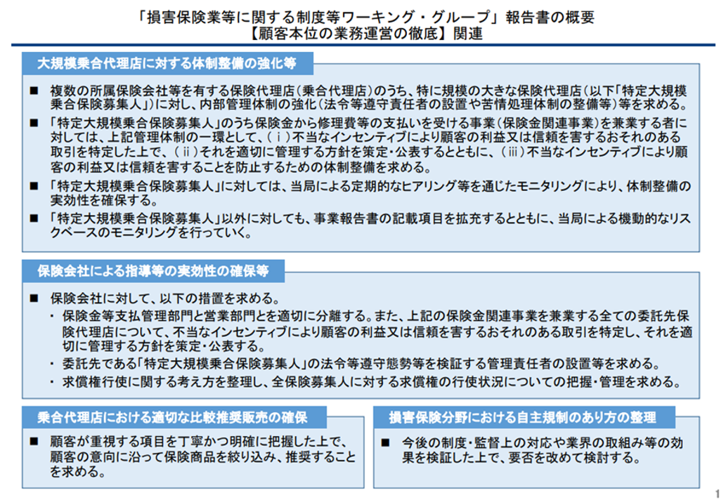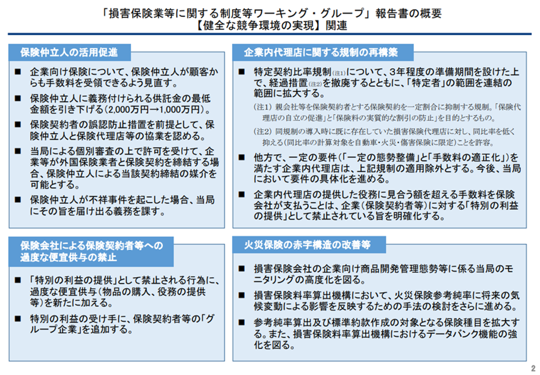 金融審議会「損害保険業等に関する制度等ワーキング・グループ」報告書の概要