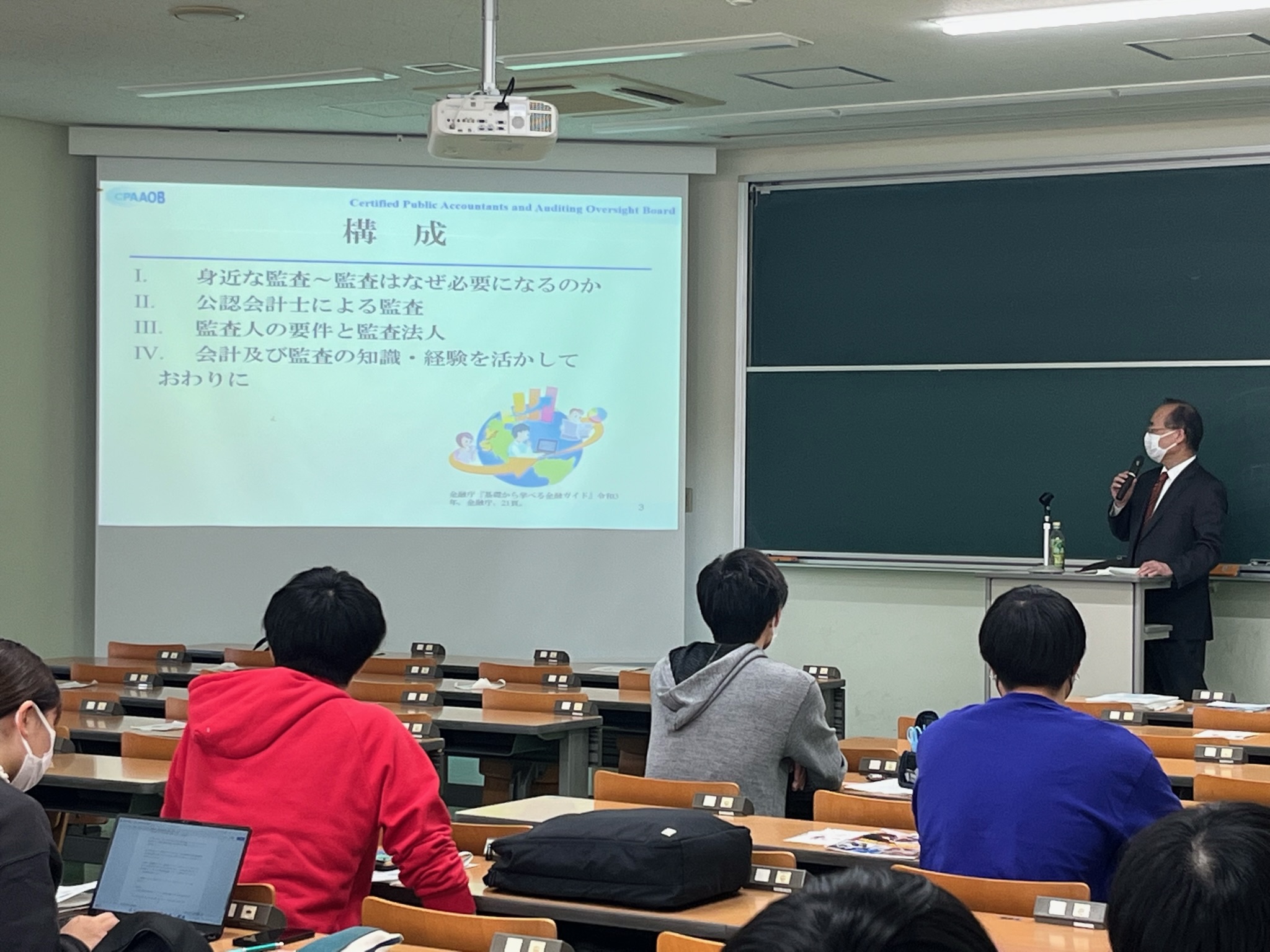 トップページ その他の情報 講演・寄稿等 令和4年の講演会等 講演等 高崎経済大学講演 令和4年11月28日、高崎経済大学において、松井会長が「職業としての監査~公認会計士の魅力」をテーマとして講演を行い、多数の学生の皆さまに御出席いただきました。 【講演資料】(PDF:1,729KB) サイトマップ 公認会計士・監査審査会ページ一覧を開きます 審査会について パンフレット 年次報告 審査会の開催状況 品質管理レビューの審査・検査ページ一覧を開きます 基本方針・基本計画等 検査結果等の取りまとめ 勧告 公認会計士試験ページ一覧を開きます 試験実施情報 令和8年試験について 令和7年試験について 過去の試験結果等 試験のバランス調整について 公認会計士試験Q&A 申請書様式等 公認会計士試験合格者等の方へ 公共サービス改革基本方針に基づく民間競争入札 その他の情報ページ一覧を開きます 国際関係 講演・寄稿等 パブリックコメント 公認会計士・監査審査会発足以前の情報 リンク集 採用情報ページ一覧を開きます 採用情報 審査検査課長からのメッセージ(PDF) 検査官からのメッセージ(1)(PDF) 検査官からのメッセージ(2)(PDF) Q&A(PDF) 情報公開等ページ一覧を開きます 情報公開 個人情報保護 ページの先頭に戻る