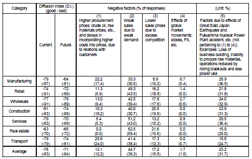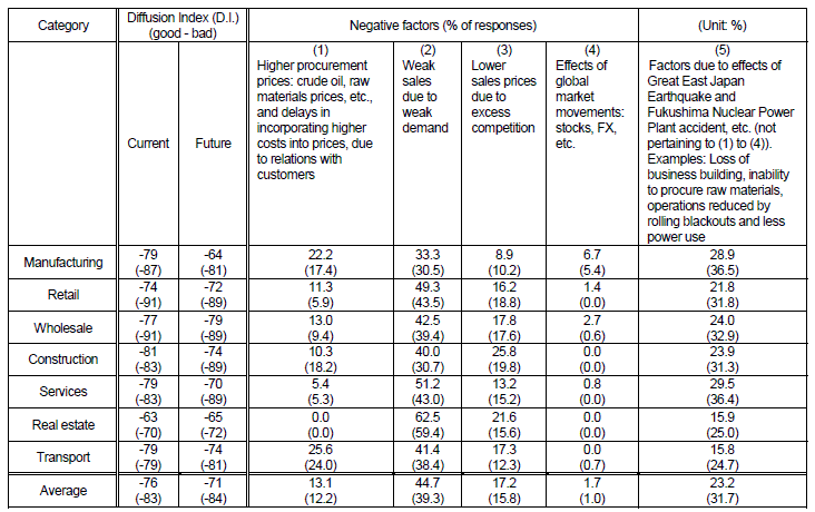 Note 3: Figures in parentheses are results of the May 2011 survey.