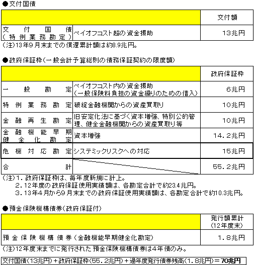 預金保険機構に係る交付国債と政府保証枠(平成13年度)