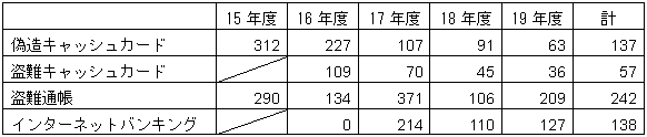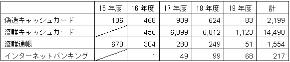 | (注) | 偽造キャッシュカード被害発生件数及び平均被害額の合計には、12年度(1件)及び14年度(8件)の件数・金額を含む。 |
