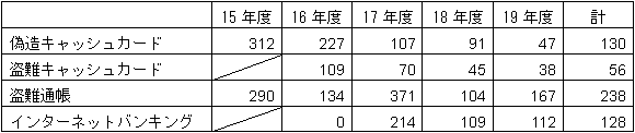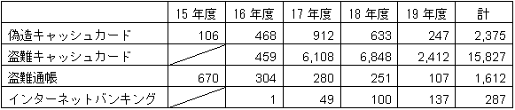 | (注2) | 偽造キャッシュカード被害発生件数及び平均被害額の合計には、12年度(1件)及び14年度(8件)の件数・金額を含みます。 |
