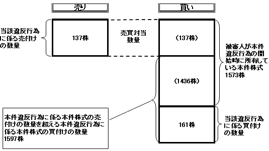2下記(1)の額から下記(2)の額を控除した額(本件違反行為に係る本件株式の買付けの数量(本件みなし買付けの数量を含む1734株)が本件違反行為に係る本件株式の売付けの数量(137株)を1597株超えるため)