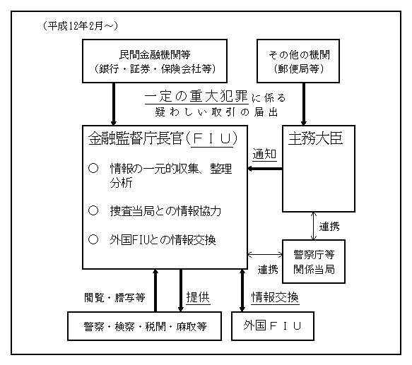 FIU(Financial Intelligence Unit)とは、金融機関等から届け出られたマネー・ローンダリング情報を一元的に管理することにより、情報の効果的な処理及び国際的な情報交換の促進等を図ることを目的とする政府機関である。