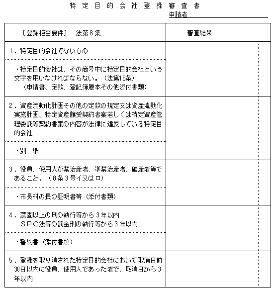 えで、別紙様式1[特定目的会社 申請書類チェックリスト]に従い審査するものとする。