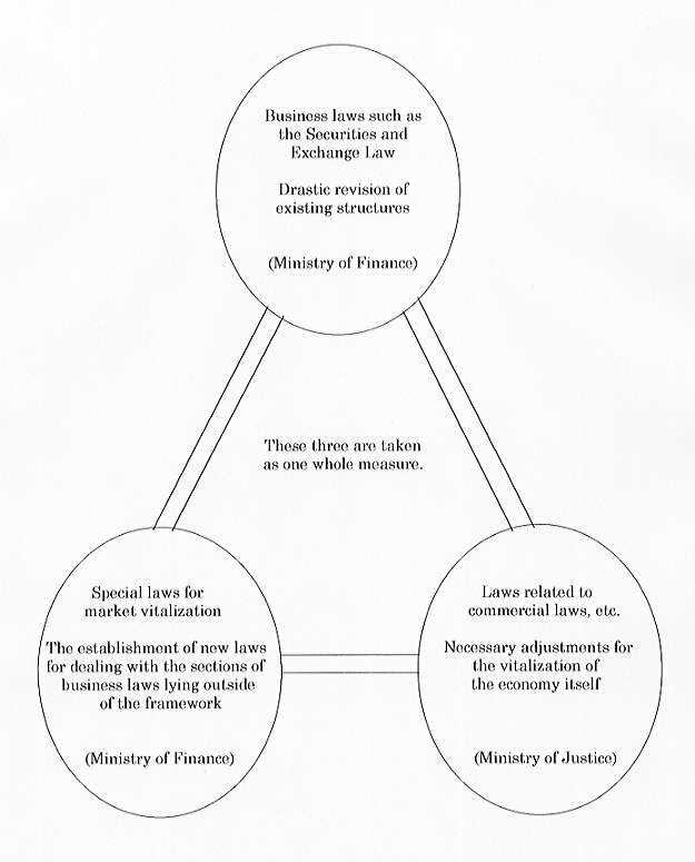 2. For this reason, it is essential to implement positive reforms into the existing laws such as the Securities and Exchange Law and the Bank Law. Through consultations with the concerned Ministries, we hope to establish new laws that can also be called special laws for market vitalization, with the aim of raising the market infrastructure to international standards.