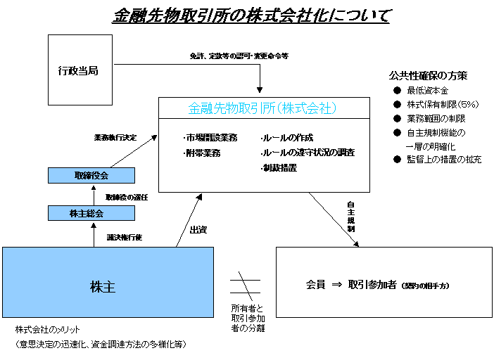 .証券取引所及び金融先物取引所(以下「証券取引所等」という。)の組織形態に株式会社を導入する。 |