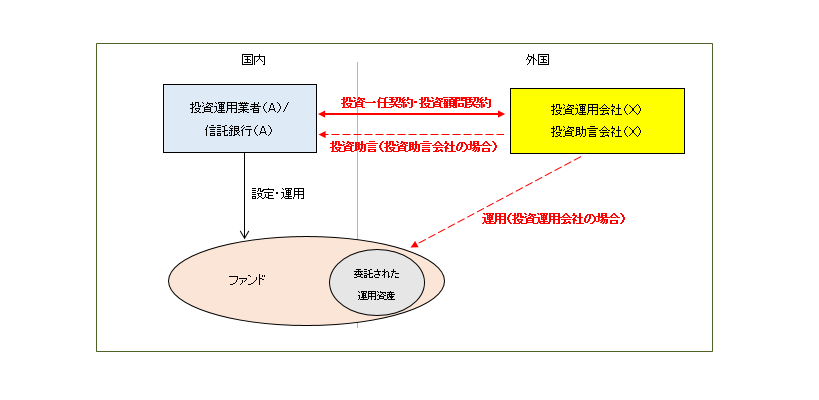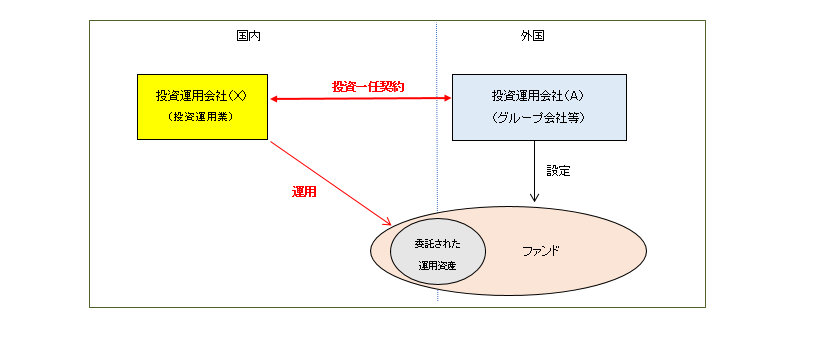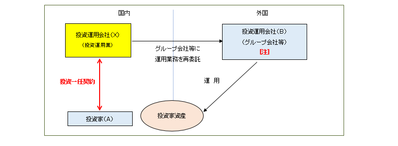 (ⅰ) 国内に拠点を置く投資運用会社が、国内投資家から資産運用を受託するとともに、その運用業務を、外国のグループ会社等に再委託する場合