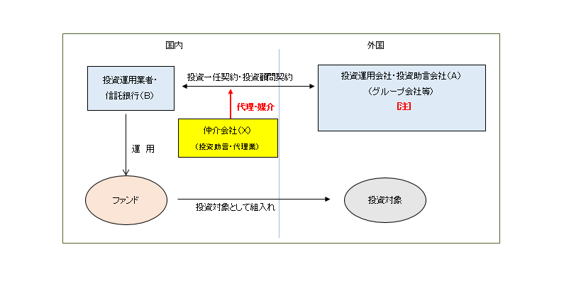 (ⅱ) 国内に拠点を置く投資運用会社が、国内投資家から資産運用を受託し、外国のグループ会社等が組成したファンドに投資することで運用を行う場合