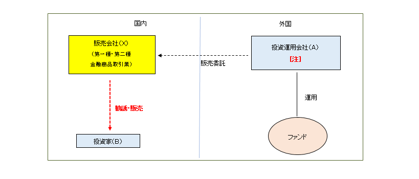 (ⅰ) 国内に拠点を置く販売会社が、外国に拠点を置く投資運用会社から委託を受けて、その運用するファンドを国内投資家に対して勧誘・販売する場合