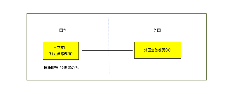 外国において証券取引業務、投資運用業又は投資助言業務を行う外国金融機関(X)が、有価証券市場等に関する情報収集・情報提供等を行うため、国内に駐在員事務所等の施設を設置しようとする場合。