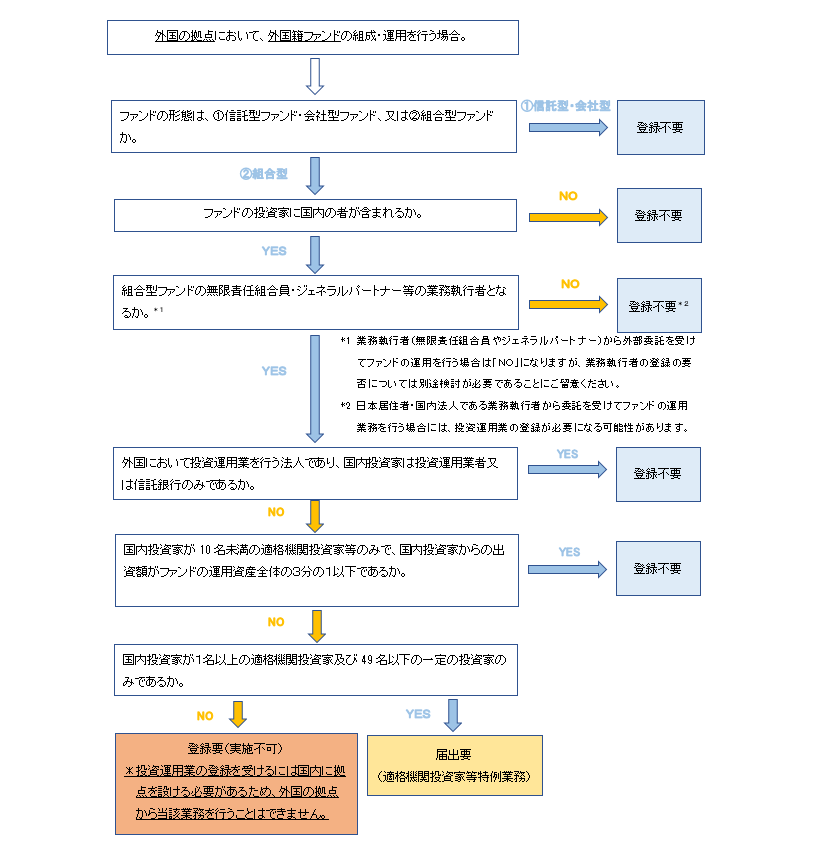 (ⅸ) 外国に拠点を置く投資運用会社が、外国において組成した組合型ファンドに関し、国内の投資家から出資を受ける場合【登録不要なケース】