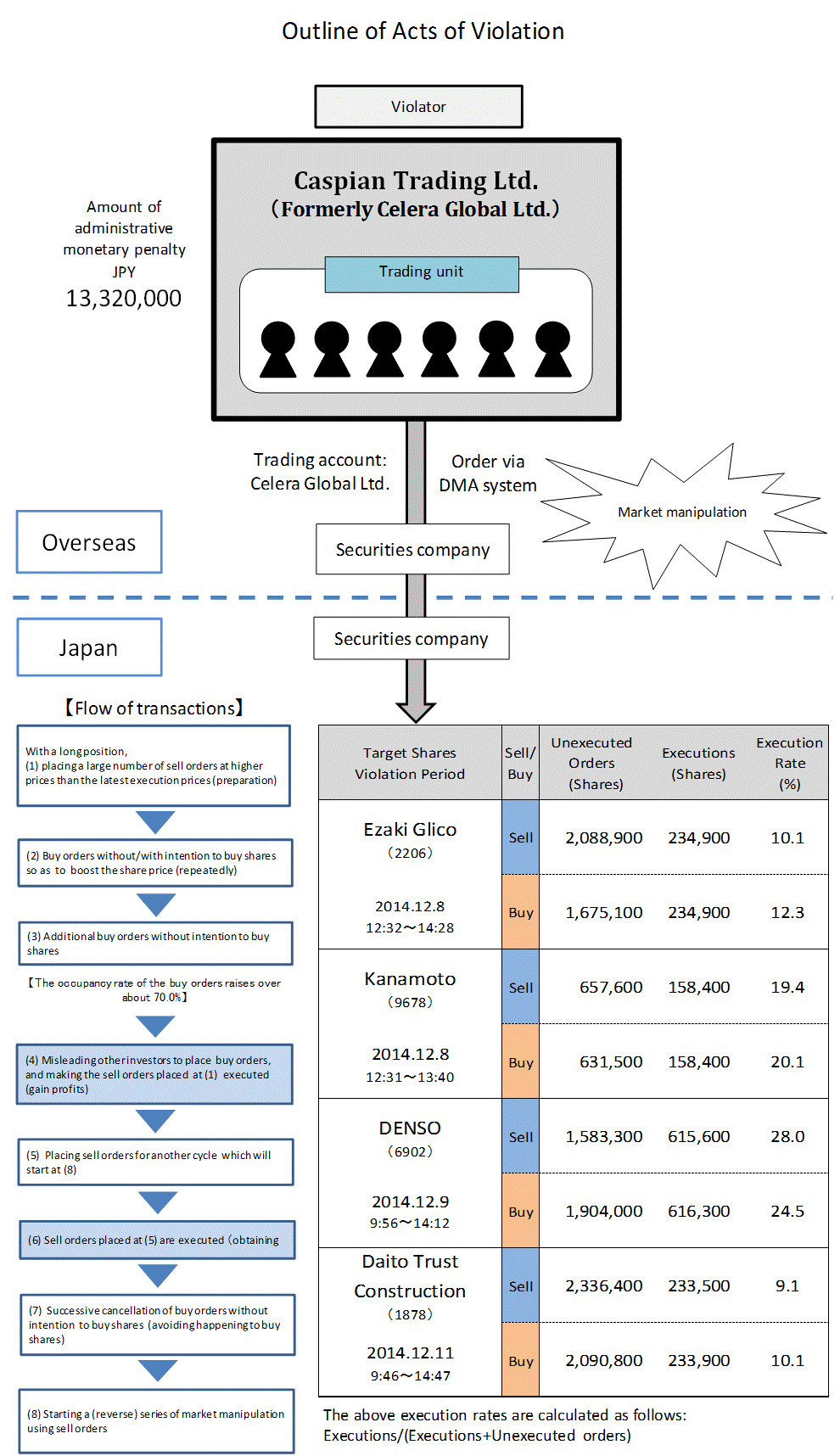 Recommendations for Administrative Monetary Penalty Payment Order for Market Manipulation of shares of Ezaki Glico Co., Ltd. and three other companies by Caspian Trading Ltd. (formerly Celera Global Ltd.)