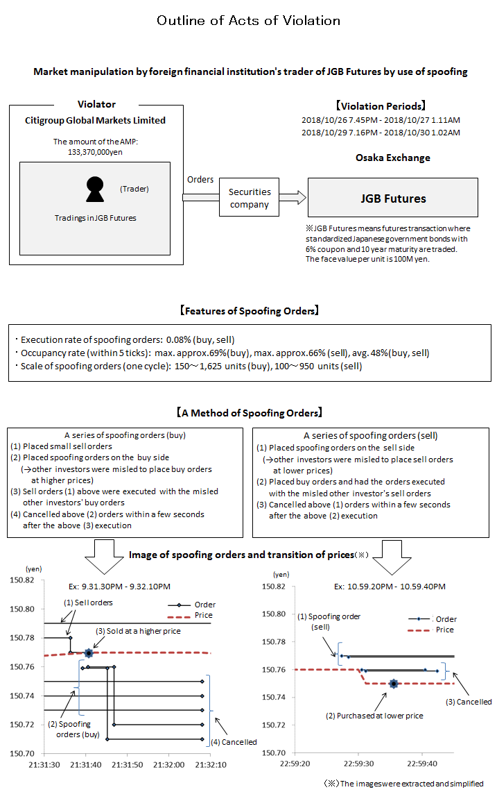 Recommendation for Administrative Monetary Penalty Payment Order for Market Manipulation of 10-year Japanese Government Bond Futures by Citigroup Global Markets Limited.