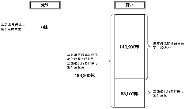 当該違反行為に係る有価証券の買付数量が、売付数量を超えることから、当該超える数量193,300株(193,300株-0株)について、