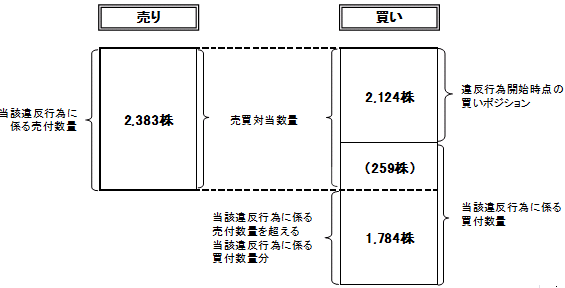 (2)上記(1)のとおり、当該違反行為に係る有価証券の買付数量が、売付数量を超えることから、