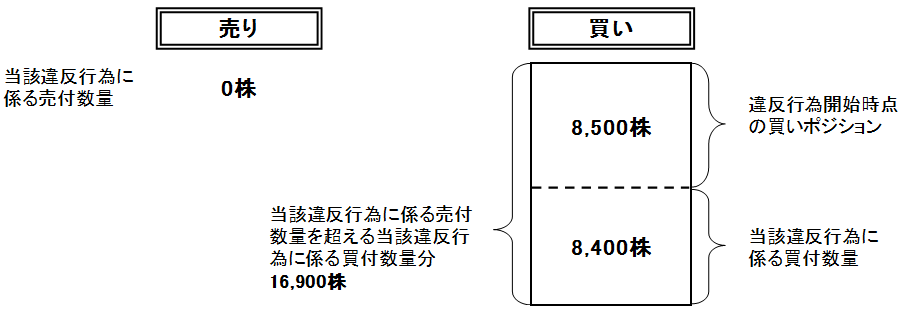 当該違反行為に係る有価証券の買付数量が、売付数量を超えることから、当該超える数量16,900株(16,900株-0株)について、