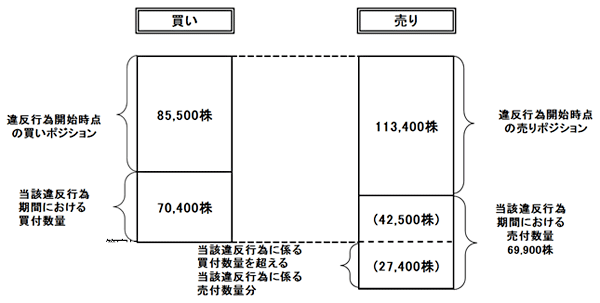 (2)上記(1)のとおり、違反行為期間における有価証券の売付数量が、買付数量を超えることから、