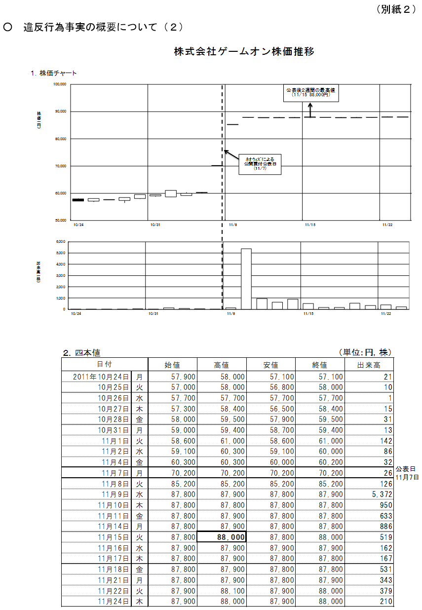 海外に居住する公開買付者の従業員によるゲームオン株式に係る内部者取引に対する課徴金納付命令の勧告について