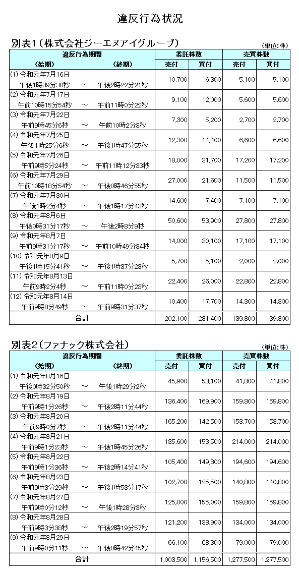 ジーエヌアイグループ株式外1銘柄に係る相場操縦に対する課徴金納付命令の勧告について