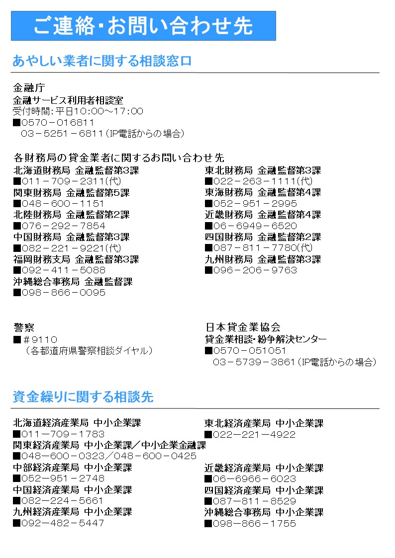 ヤミ金融業者を絶対に利用しないでください。